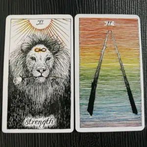 The first card was Strength, which in her deck shows a lion with a rose in his mouth.